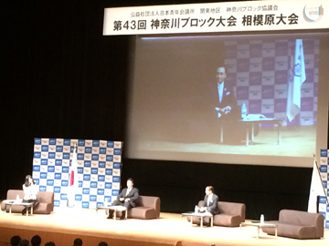 パネリストに、山際大志郎氏(経済産業副大臣)・黒岩祐治氏(神奈川県知事)・杉岡芳樹氏(相模原商工会議所会頭)をお招きし、「地方創生」で国・県・自治体の取り組みについて議論を交わして頂きました。