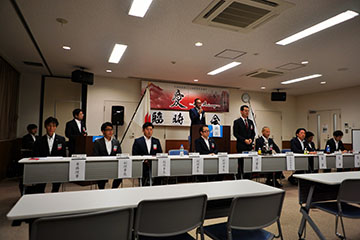 小田原青年会議所の会員が一同に集まり、理事長石ア健太郎君が議長を務め、2018年度補正予算の承認が行われ、そして、2019年度理事長予定者の承認が行われました。