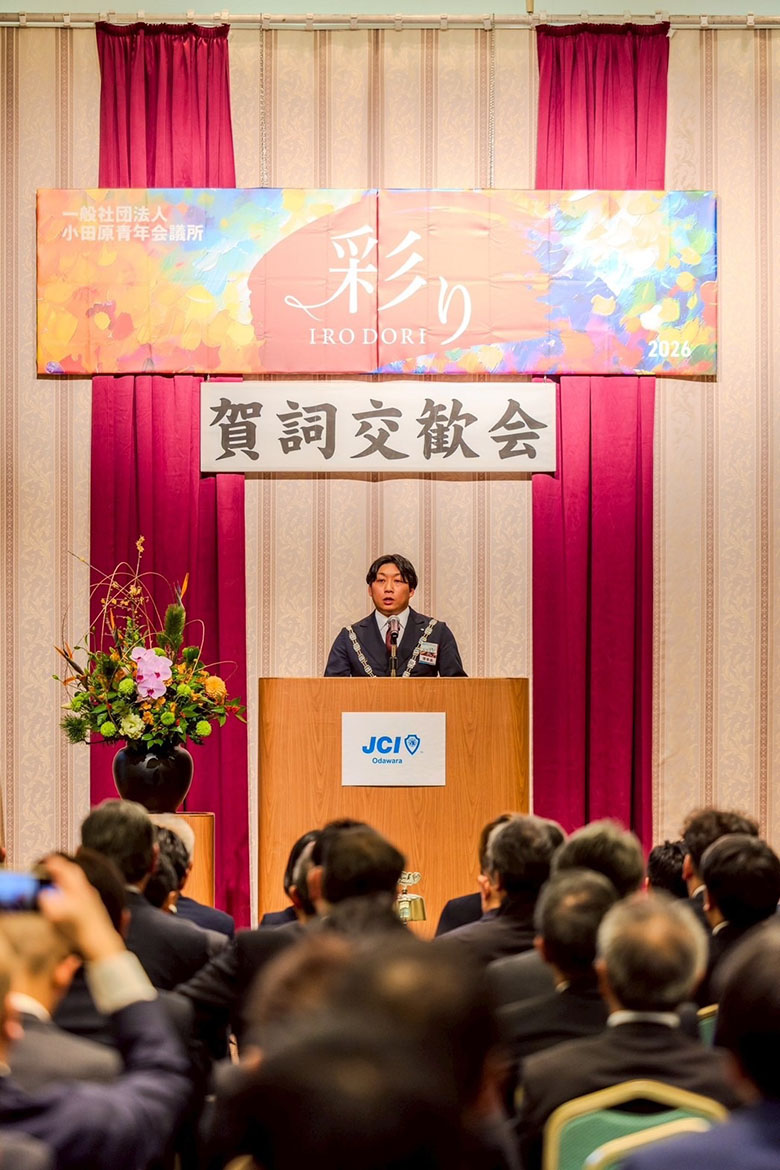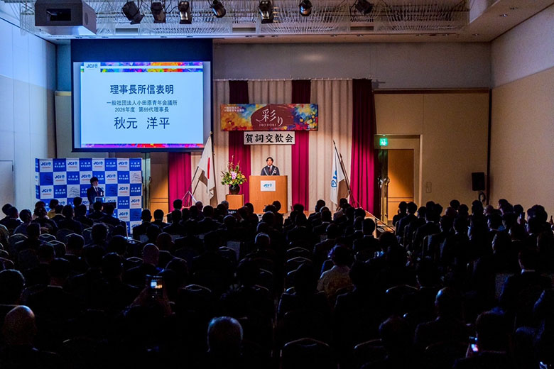 1月例会 賀詞交歓会 2026年1月5日(月) 湯本富士屋ホテルにおいて、一般社団法人小田原青年会議所は「1月例会 賀詞交歓会」を開催いたしました。 本年は「彩り」をスローガンに掲げ、秋元理事長のもと、一人ひとりの個性や想いを大切にしながら、地域に新たな価値を生み出していく運動を展開してまいります。 本年も1年間、よろしくお願いいたします! 【2026年度 所信表明】一般社団法人小田原青年会議所 第69代理事長 秋元洋平